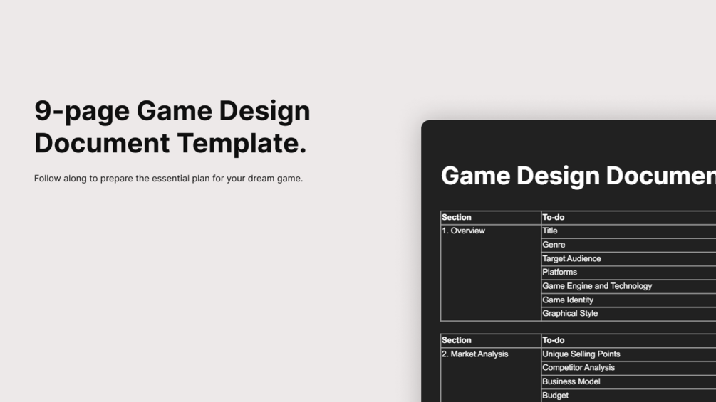This comprehensive Game Design Document Template will help you to supercharge your indie game's design whether you are building with Unity, Unreal, or Godot.