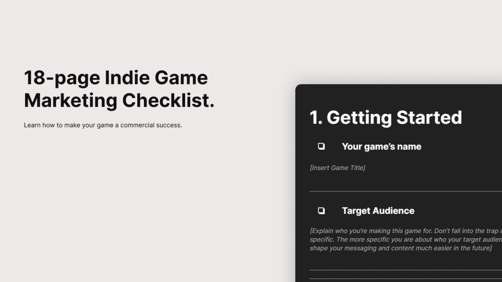 18-page Indie Game Marketing Checklist to make your game a commercial success. 💸